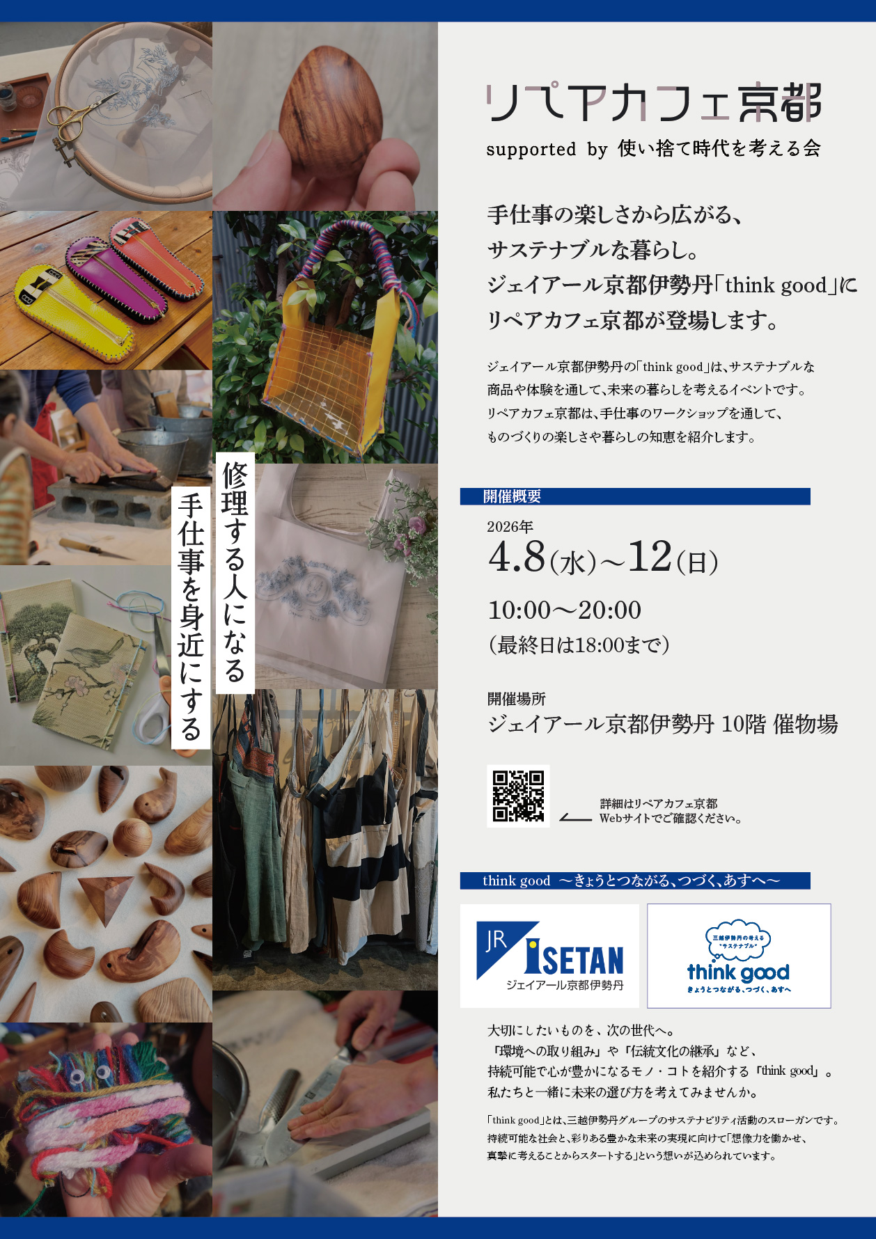ジェイアール京都伊勢丹「think good」にリペアカフェ京都が登場します。(2026.4.8〜12)