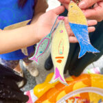 端革で作ったお魚チャームに色を塗ったり、カシメを打ったり、好きなようにカスタマイズ!