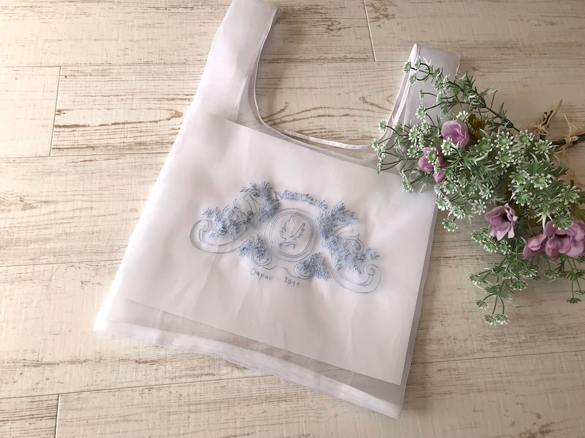 透け感の美しいオーガンジーのエコバッグに、オートクチュール刺繍を施してみませんか?
