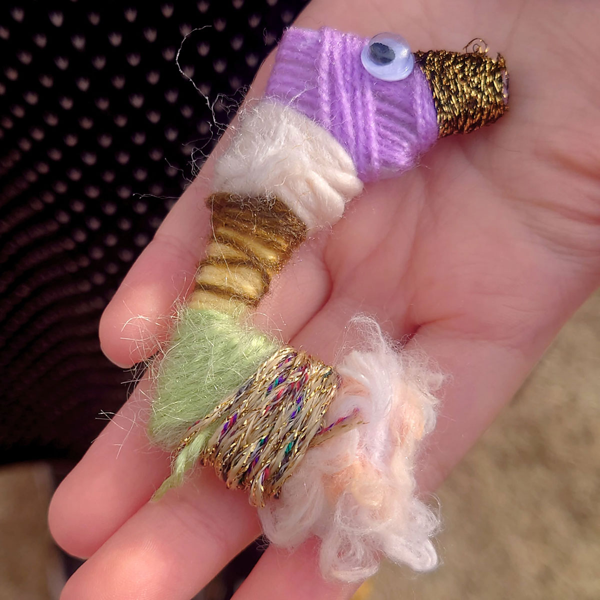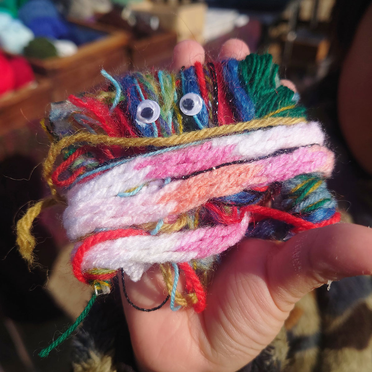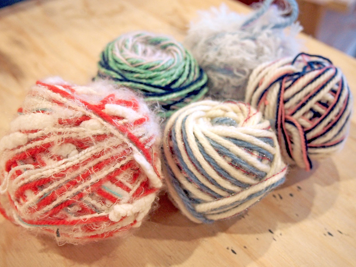 余った毛糸や工場の残糸を、別の端材と組み合わせてものを作るワークショップです。