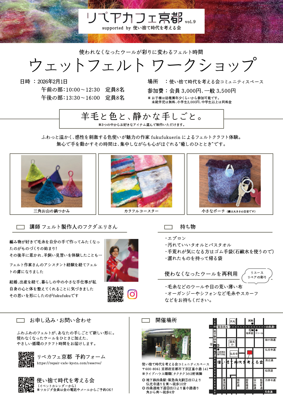 リペアカフェ京都Vol.9は、ウェットフェルトです。